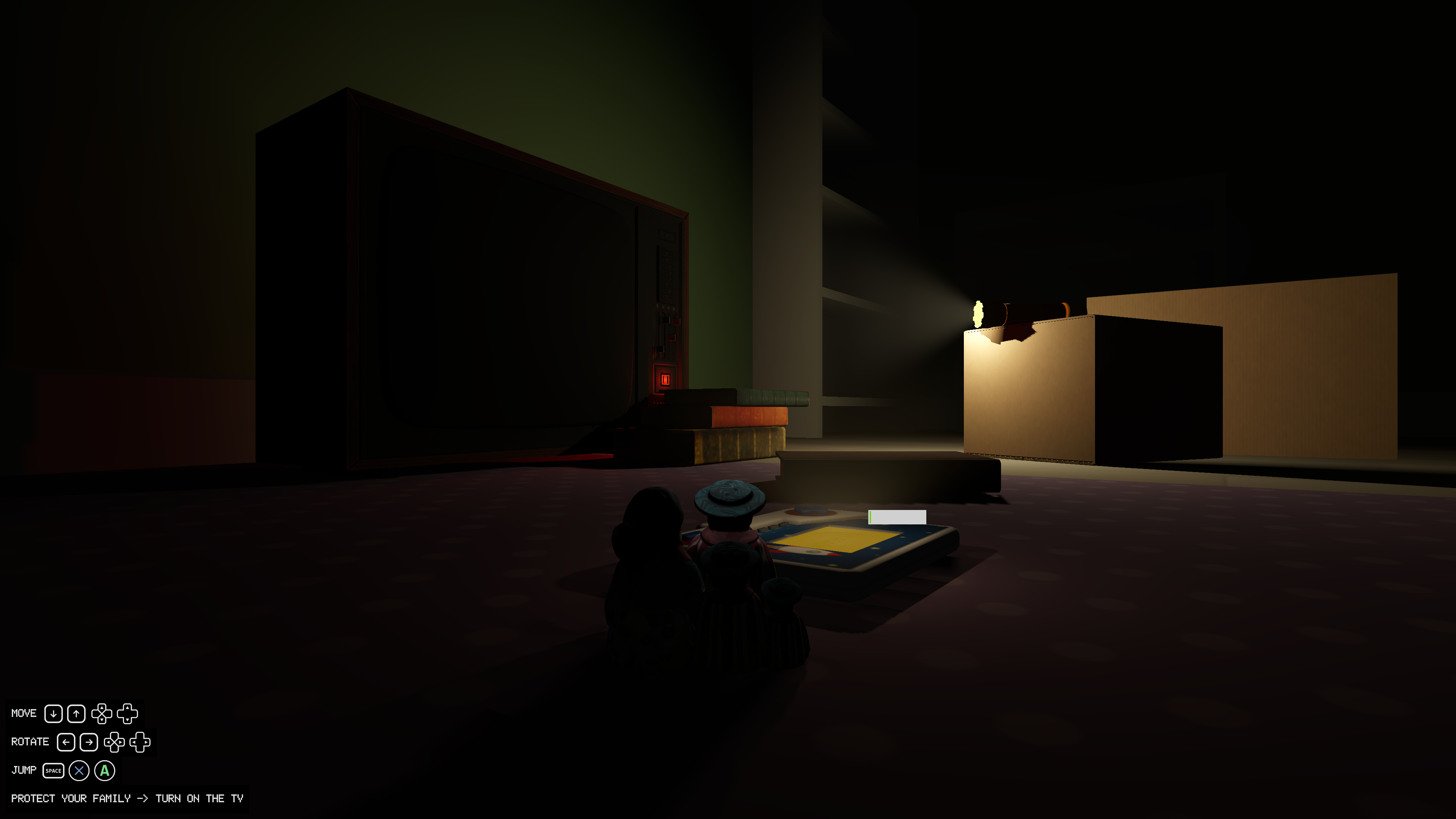 In the darkness, shadows are waiting to take your family away. Your only hope of survival lies in turning on the TV.